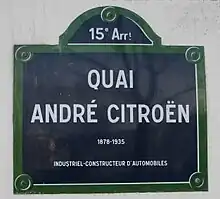 O quai de Javel, onde se localizava a histórica fábrica da Citroën, foi posteriormente renomeado quai André-Citroën e a antiga fábrica foi transformada no Parque André Citroën, em sua memória.[5] Hoje, o Parque André Citroën é um parque público de 14 hectares (35 acres), localizado na margem esquerda do rio Sena, no 15º arrondissement de Paris.[6]