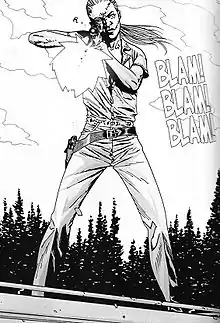 - Robert Kirkman (w), Tony Moore (a). The Walking Dead 2: 22/1 (Novembro de 2003), Image Comics.