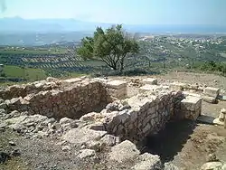 Na antecâmara foram encontrados vasos, pitos, almofarizes, pilões e potes tripés. Na sala central havia utensílios maiores e grande quantidade de vasos. Na parede sul havia um banco que possivelmente foi usado para colocar objetos de culto; um par de pés de uma possível estátua de culto foi identificado nesta sala. Na sala oriental foram encontradas duas pequenas caixas de bronze um altar com escada e grandes bacias para oferendas de produtos agrícolas (frutas, colheitas, legumes, vinho, óleo). Na sala ocidental foram identificados três corpos, dois mortos pelos terremoto e um sobre um altar. Este terceiro corpo foi identificado junto de a uma faca e seus pés estavam amarrados o que possivelmente sugere que tenha sido sacrificado e seu sangue drenado.[1]