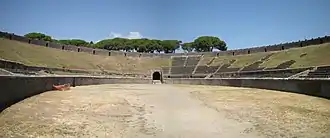 O anfiteatro de Pompeia foi uma construção com capacidade para 20 000 espectadores, quantidade suficiente para acomodar toda a população da cidade romana de Pompeia e mais seus visitantes, que por sua vez, eram em número quase igual ao de seus habitantes (CIL, X, 852).[1] O anfiteatro abrigava jogos financiados por moradores evergetas da cidade que quisessem ter influência política, ou por governantes que desejassem se manter no poder. Os jogos mais comuns no anfiteatro eram as batalhas de gladiadores.