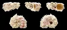![]() Duas vistas da concha de Angaria delphinus (Linnaeus, 1758), a espécie-tipo do gênero Angaria Röding, 1798[1]; espécimes provenientes da Indonésia, no Indo-Pacífico. | |||||||||||||||||