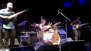 ![]() Animals as Leaders em Boston em 24 de novembro de 2010. Da esquerda para direita: Javier Reyes, Navene Koperweis, e Tosin Abasi. | |