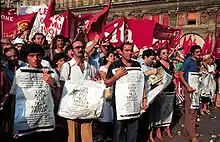 Houve conflitos sociais generalizados e atos de terrorismo sem precedentes perpetrados por grupos de direita e de esquerda. Uma tentativa de endossar o neofascista Movimento Social Italiano (MSI) por parte do Gabinete Tambroni levou a tumultos e durou pouco.[36] A agitação trabalhista generalizada e a colaboração de grupos ativistas estudantis contraculturais com operários da classe trabalhadora e organizações radicais de esquerda pró-trabalho, como Potere Operaio e Lotta Continua, culminaram no chamado "Outono Quente" de 1969, uma série massiva de greves nas fábricas. e centros industriais no norte da Itália.[37] Greves estudantis e trabalhistas, muitas vezes lideradas por trabalhadores, esquerdistas, trabalhadores simpatizantes da esquerda ou ativistas marxistas, tornaram-se cada vez mais comuns, muitas vezes deteriorando-se em confrontos entre a polícia e manifestantes compostos em grande parte por trabalhadores, estudantes, ativistas e, muitas vezes, militantes de esquerda.[37]