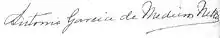 - A grafia correta é "Antonio Garcia de Medeiros Netto", sem acento no primeiro "o" de Antonio e Netto com dois "t". É com essa grafia que o nome do senador baiano é preservado há mais de cem anos por sua família. Aliás, todos os descendentes do senador têm ainda hoje o sobrenome "Medeiros Netto" com dois "t". O nome do município de Medeiros Neto, na Bahia, é grafado com um "t" só.