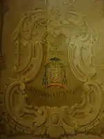 Descrição: Escudo eclesiástico oval de arminho com um leão rampante de Jalde carregado de uma cruz grega de Goles, na espádua. O Leão dentro de uma orleta dupla de Goles. O escudo assente em tarja branca. O conjunto pousado sobre uma cruz trevolada de ouro. O todo encimado pelo chapéu eclesiástico com seus cordões em cada flanco, terminados por seis borlas cada um, tudo de verde. Brocante sobre a ponta da cruz um listel de Goles com o lema IPSA CONTERET, em letras de Jalde.[4]
