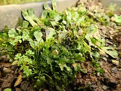- Seu esporófito tem um formato taloso e é fotossintetizante (tem estômatos), portanto eles são independentes do gametófito, mantendo-se vivos por mais tempo. Dependendo da relação de Anthocerotophyta com outras plantas terrestres, essa característica em particular pode ser uma sinapomorfia de Anthocerotophyta + Plantas vasculares.[1]