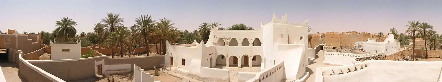 O oásis tem cerca de 7 mil habitantes, berberes e alguns tuaregues. Cada um dos sete clãs que habitavam na antiga cidade tinha o seu bairro, e cada bairro tinha uma zona pública onde tinham lugar as festas. Na década de 1970, o governo construiu novas habitações fora da zona antiga da cidade. No entanto, muitos habitantes regressam à zona antiga da cidade durante o verão, pois a arquitectura tradicional fornece melhor protecção contra o calor.