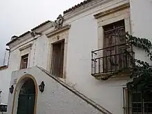 A fachada principal tem escada exterior (com corrimão e balaústre de mármore), com porta encimada pelo Escudo Real Português, também em mármore, do reinado de D. João V e duas janelas de sacada. No piso inferior funcionava o Celeiro Comum, estando o portão datado de 1882.[1]