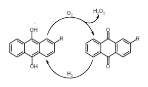 Uma importante aplicação industrial de antraquinonas é na produção de peróxido de hidrogênio. 2-Etil-9,10-antraquinona ou algum outro derivado de alquila relacionado é usado, além da própria antraquinona.[3]