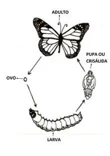 Entre os insetos há os que não apresentam metamorfose, ou seja, do ovo surge organismo semelhante ao adulto, mas com amadurecimento sexual em formação, como no caso das traças. Outros insetos apresentam metamorfose incompleta, com os estágios ovo - ninfa(ou imago)-adulto. No estágio de ninfa o animal se parece com o adulto, mas com amadurecimento sexual em formação e faltando geralmente asas, como no caso dos gafanhotos. A metamorfose completa é caracterizada pelos estágios ovo-larva-pupa-adulto. Neste caso na fase de larva ele se movimenta e no de pupa (também chamada de crisálida) não, como nas borboletas.