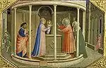 O Casamento da Virgem apresenta em fundo uma igreja renascentista com pórtico, enquanto a Visitação mostra uma loggia de esquina, habilmente desenhada. No entanto, nesta cena não se atinge a viva expressão da fadiga na mulher que atinge o cimo do caminho como na predela da Anunciação de Cortona. A Adoração dos Magos é, por sua vez, muito original e mostra uma iconografia frontal inovadora, bem antes da revolução de Botticelli (A Adoração dos Magos, c. 1475, Uffizi) evidenciada pela perspectiva ousada das ruínas da cabana. Aqui também se nota o uso distintivo da luz de Beato Angelico, que cria uma luz diáfana e cristalina que molda os volumes em vez do chiaroscuro, vincando a harmonia das cores e ajudando a unificar as cenas.