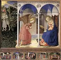 - Este artigo foi inicialmente traduzido, total ou parcialmente, do artigo da Wikipédia em italiano cujo título é «Annunciazione (Angelico Prado)».