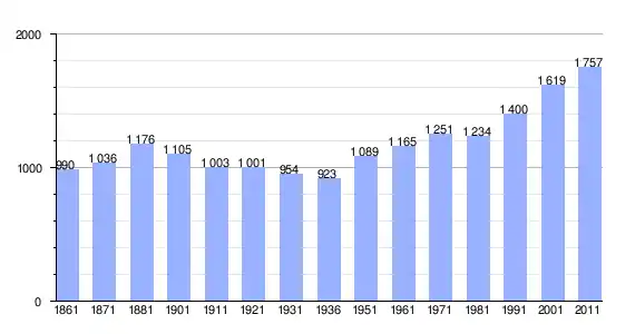 | Variação demográfica do município entre 1861 e 2011[3] |