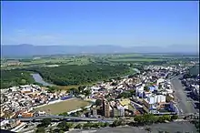 ![]() Vista de Aparecida a partir do Mirante do Cruzeiro com a Catedral Basílica ao centro da imagem | |||