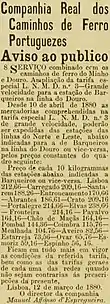 - «Troços de linhas férreas portuguesas abertas à exploração desde 1856, e a sua extensão» (PDF). Gazeta dos Caminhos de Ferro. Ano 69 (1652). 16 de Outubro de 1956. p. 528-530. Consultado em 26 de Junho de 2015 – via Hemeroteca Digital de Lisboa
