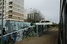 Esta interface situa-se entre as avenidas Cruz Guerreiro (a norte) e Cidade de Huelva (a sul), que aqui ladeiam a via férrea; as duas paragens de camionagem local mais próxima (Carrapatoso Sul e Bairro dos Carteiros) encontram-se a certa distância.[3][4]