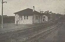 Em 14 de Janeiro de 1927, as Companhias do Caminho de Ferro de Guimarães e do Porto à Póvoa e Famalicão, fundiram-se numa só empresa, a Companhia dos Caminhos de Ferro do Norte de Portugal.[3] Uma vez que o apeadeiro de Covas já não satisfazia as necessidades da crescente população, devido à sua progressiva industrialização por parte da autarquia de Guimarães, a Companhia do Norte começou a planear a expansão do apeadeiro para uma estação, que deveria incluir uma casa para o chefe de estação, jardins, retretes, vias de resguardo e um cais coberto e outro descoberto.[4] Depois de ter sido concluído o projecto e feitas as expropriações, a companhia iniciou a construção da estação.[4] O edifício de passageiros situava-se do lado poente da via (lado esquerdo do sentido ascendente, a Fafe).[5][6]