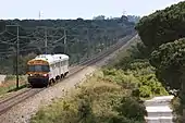 Comboios de tipologias diversas no local do apeadeiro da Fonte.
