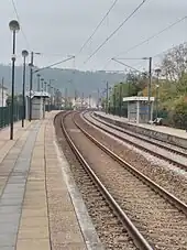 Como apeadeiro em linha em via dupla, esta interface apresenta-se nas duas vias de circulação (I e II) cada uma acessível por plataforma — ambas com 172 m de comprimento e com alturas de respetivamente 55 e 51 cm.[3] Ambas as plataformas são dotadas de abrigo.[6]