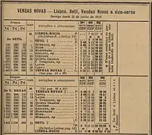 Horário da Linha de Vendas Novas em 1913, incluindo o apeadeiro de Morgado.