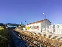 Como apeadeiro em linha em via única, esta interface tem uma só plataforma, situada do lado nascente da via (lado direito do sentido ascendente, para Figueira da Foz).[7], com 150 m de comprimento e 90 cm de altura.[8]