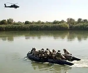 ![]() Apoio aéreo aproximado aéreo aproximado para soldados do Exército dos EUA durante patrulha na região do Rio Tigre, próximo de Bagdá, no Iraque. | |