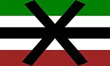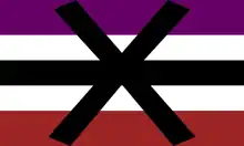 A bandeira consiste nas cores roxa, branca, vermelha e preta, tem um grande X no centro que provavelmente significa repulsa.[12] Os significados das cores encontradas na bandeira apotissexual não foram fornecidos, porém tais cores, com exceção do vermelho, são comuns da bandeira assexual.[3][13] O usuário do Tumblr kenochoric, por exemplo, criou duas bandeiras apotissexuais, sendo postadas, na plataforma, no dia 12 de novembro de 2020.[3]