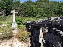 Junto do aqueduto ergue-se um cruzeiro simples em granito, constituído por pedestal quadrangular sobre o qual assentam umas alminhas. Sobre estas ergue-se uma cruz latina, de secção quadrada, talhada num bloco único.