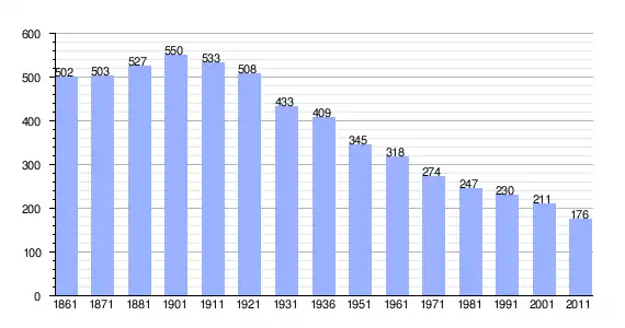 | Variação demográfica do município entre 1861 e 2011[3] |