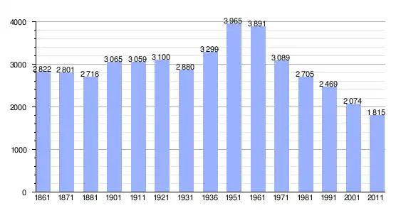 | Variação demográfica do município entre 1861 e 2011[3] |