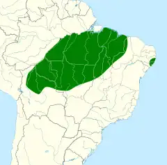 Ele esta distribuído pela, Regiões Norte e Central da Amazônia, Mato Grosso, Bolívia, Nordeste do Brasil e Colômbia.[9]