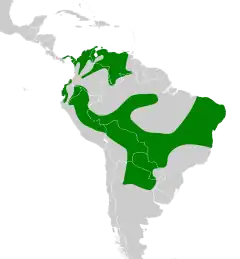 Pode ser encontrada nos seguintes países: Argentina, Bolívia, Brasil, Colômbia, Equador, Panamá, Paraguai, Peru e Venezuela.[1]