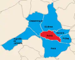 A câmara de vereadores) ararense é formada por nove vereadores, e está composta da seguinte forma: três cadeiras do Partido do Movimento Democrático Brasileiro (PMDB); duas cadeiras do Partido Social Democrático (PSD); uma cadeira do partido do Partido Social Liberal (PSL); uma cadeira do Partido Trabalhista Brasileiro (PTB); uma cadeira do Partido Progressista (PP) e uma cadeira do Partido dos Trabalhadores (PT).