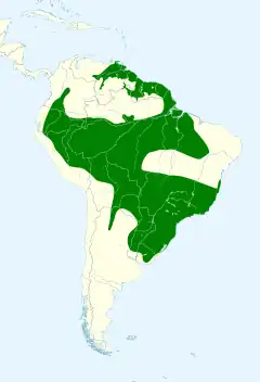 Ocorre das Guianas à Argentina e por quase todo o Brasil, sendo encontrado desde em florestas até cidades. É ave adaptável a ambientes alterados pelo homem.