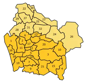 Para fins de administração local, as províncias estão divididas em 32 comunas.