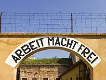 "Arbeit macht frei" (pronúncia em alemão: [ˈaɐ̯baɪt ˈmaxt ˈfʁaɪ]) é uma frase em alemão que significa "o trabalho liberta".[1] A expressão é conhecida por ter sido colocada nas entradas de vários campos de extermínio do regime nazista durante a Segunda Guerra Mundial, como em Auschwitz I, onde a inscrição foi feita por prisioneiros com habilidades em metalurgia e foi erigida por ordem dos nazistas em junho de 1940.[2]
