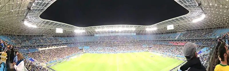 A Arena do Grêmio é um estádio de futebol localizado no bairro Farrapos, Porto Alegre, Rio Grande do Sul.[5] Sua capacidade oficial é para 55.662 lugares, sendo o 7º maior estádio do Brasil. No Sisbrace, sistema de avaliação de estádios de futebol do Ministério do Esporte do Brasil, a Arena do Grêmio recebeu classificação máxima em todos os aspectos.[6] No mesmo ano da inauguração, foi eleito o "Estádio do Ano", pelo site "StadiumDB", ficando a frente de outras arenas como o Estádio Nacional de Varsóvia.[7]