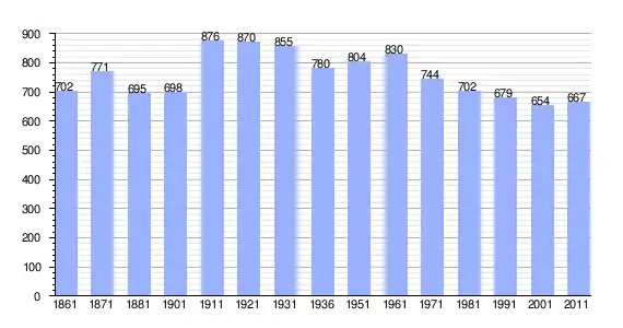 | Variação demográfica do município entre 1861 e 2011[3] |