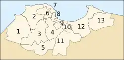 Mapa mostrando os 13 distritos da província de Argel