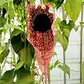 A Aristolochia grandiflora traz flores com até 75 centímetros de cima até embaixo; geralmente marrom no centro, possui odor desagradável[3] e têm uma cauda longa e fina a partir da base da flor.[4]