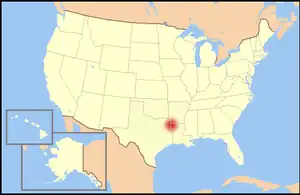Ark-La-Tex mostrado em vermelho no mapa dos Estados Unidos