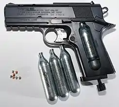 As armas BB são armas pneumáticas projetadas para disparar projéteis metálicos esféricos chamados BBs (que não devem ser confundidos com rolamentos de esferas), que são aproximadamente do mesmo tamanho do "tiro número 9" ou "BB" - 4,6 mm de diâmetro.