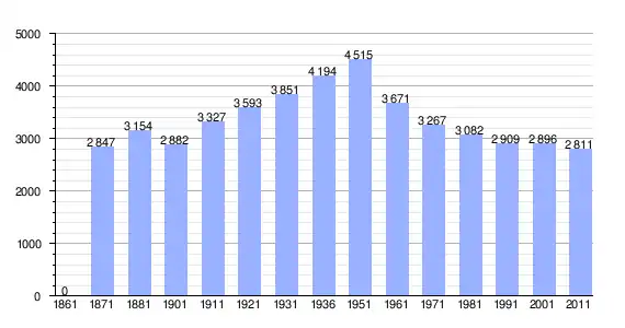 | Variação demográfica do município entre 1861 e 2011[3] |