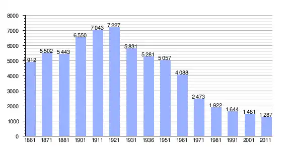 | Variação demográfica do município entre 1861 e 2011[3] |