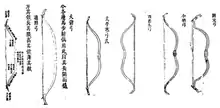 Wu Bei Yao Lue (Capítulo 4), outro manual militar clássico da dinastia Ming, descreve um conjunto de arcos distinto dos discutidos em Wubei Zhi. Estes incluem o arco de propósito geral, o arco grande-siyah (que foi usado tanto para infantaria quanto por cavalaria), e o arco da vila de Taiping (que se assemelhava a um design de arco coreano 高 e era favorecido no norte e no sul da China por seu superior artesanato).[83]