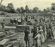 Em 1790, o padre John Carroll viajou por todo o Oceano Atlântico para a Inglaterra, onde foi ordenado e consagrado como bispo pelo Bispo de Londres.[1]