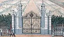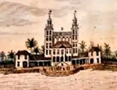 A primeira obra de grande porte realizada no Brasil foi o Palácio de Friburgo, residência oficial construída pelo conde João Maurício de Nassau entre 1640 e 1642 no Recife, então sede da colônia de Nova Holanda. Possuía duas torres altas, quadrangulares, com cinco pavimentos, ligadas por um passadiço coberto, dando-lhe o aspecto de igreja. As torres, além de embelezarem o palácio, serviam como marco para os navegantes, que podiam avistá-las a uma distância superior a sete milhas. Uma delas era utilizada como farol e a outra como observatório astronômico, o primeiro fundado no Hemisfério Sul. Protegido, do ponto de vista militar, por canhões, tinha um grande fosso e o Forte Ernesto. Entre 1774 e 1787, encontrando-se bastante arruinado devidos às lutas contra os holandeses ocorridas no século anterior, foi demolido por ordem do então governador José César de Meneses.[55]