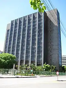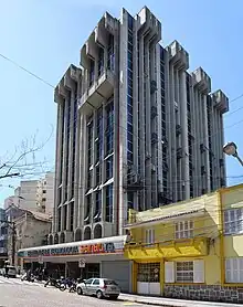 Chegando aos anos 1950 o Modernismo já estava consagrado pela oficialidade. Construções emblemáticas como o Palácio Farroupilha, assinado por Gregório Zolko e Wolfgang Schoedon, para sede da Assembleia Legislativa,[36] e o Palácio da Justiça, projeto de Fernando Corona e Carlos Fayet, ambos fruto de concurso público, foram levantados segundo princípios inteiramente modernistas. Dentre outros projetos de interesse nessa fase pode-se citar o Hipódromo do Cristal e o Edifício Esplanada, ambos do uruguaio Román Fresnedo Siri;[32] o Hospital Fêmina, de Irineu Breitman; a sede antiga do Aeroporto Salgado Filho, de Nelson Souza; a Faculdade de Farmácia da UFRGS, de Flávio Figueira Soares e Lincoln Ganzo de Castro;[37] e o traçado inicial do Hospital de Clínicas, de Jorge Moreira, o qual, se não tivesse sido desvirtuado mais tarde se constituiria, segundo Marcos da Silva, num dos marcos arquitetônicos da capital gaúcha.[38] Por esta época o centro urbano já estava repleto de edifícios de altura considerável, destacando-se Emil Bered e Salomão Kruchin como autores de vários edifícios residenciais.[37][39]