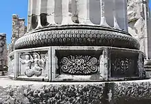 O templo dórico foi praticamente descontinuado, favorecendo as ordens jônica e coríntia, cada vez mais elaboradas.[3]