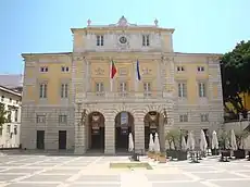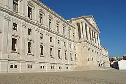 O Palácio de São Bento [15] onde actualmente está instalada a Assembleia da República, foi projectado por Ventura Terra, em Lisboa. Com a implantação do sistema parlamentar o antigo convento de São Bento recebeu modificações de modo a poder acolher o parlamento de Portugal. As obras conheceram vários arquitectos, destacando-se Ventura Terra, autor da actual fachada principal. A estrutura desenvolve-se em três corpos, sendo o central avançado, semelhante a um templo clássico. Os corpos laterais são constituídos por uma alternância entre pilastras e janelas, formando varandins com balaústres no primeiro andar. A entrada principal está assente em cinco arcos, formando um embasamento, sustendo uma larga varanda, com colunas suportando um imponente entablamento. O conjunto é amplamente decorado com formas arquitectónica e escultura no frontão, bem como quatro figuras alegóricas na entrada. O edifício só foi terminado no início do século XX.